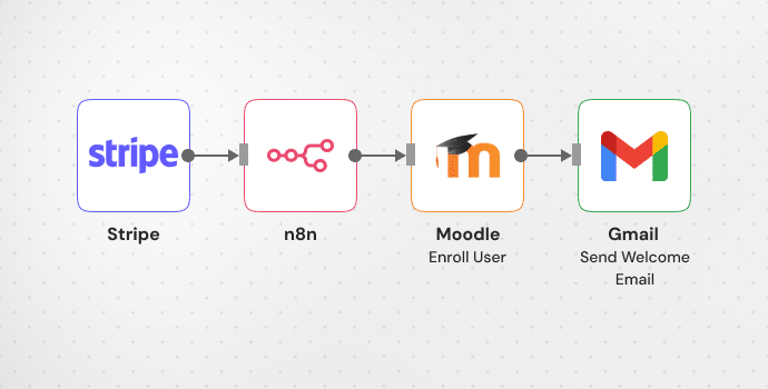 When a user completes payment via Stripe or Razorpay, n8n can instantly enrol them into a course in Moodle or LearnDash, and also notify the user and admin.